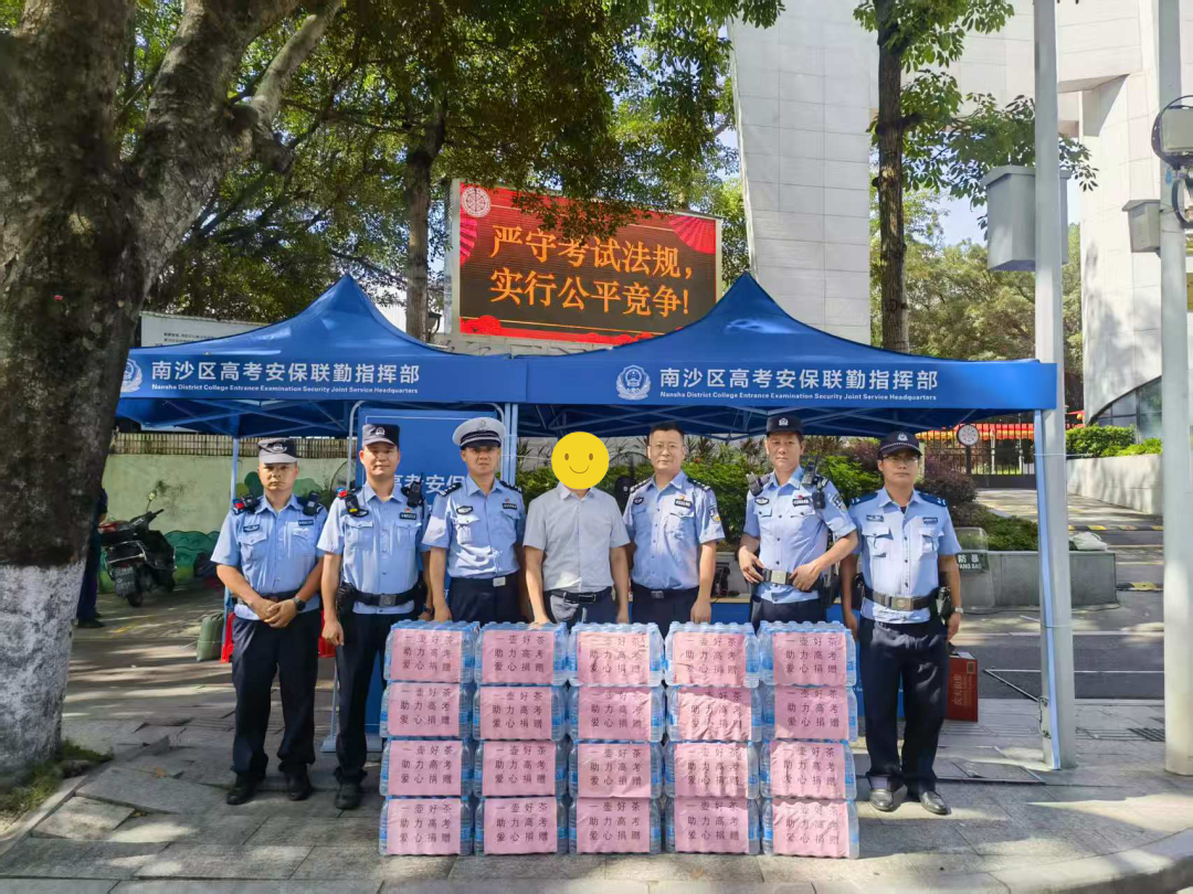 6月7日上午,南沙第一中学考点外的安保服务站迎来暖心一幕,热心群众将满载解暑物资的清凉饮用品送到执勤民警辅警手中,与一声声“辛苦了”的问候一起,为烈日下坚守岗位的护考警力注入阵阵清凉,用最朴实的方式感谢南沙公安共同守护助力高考。