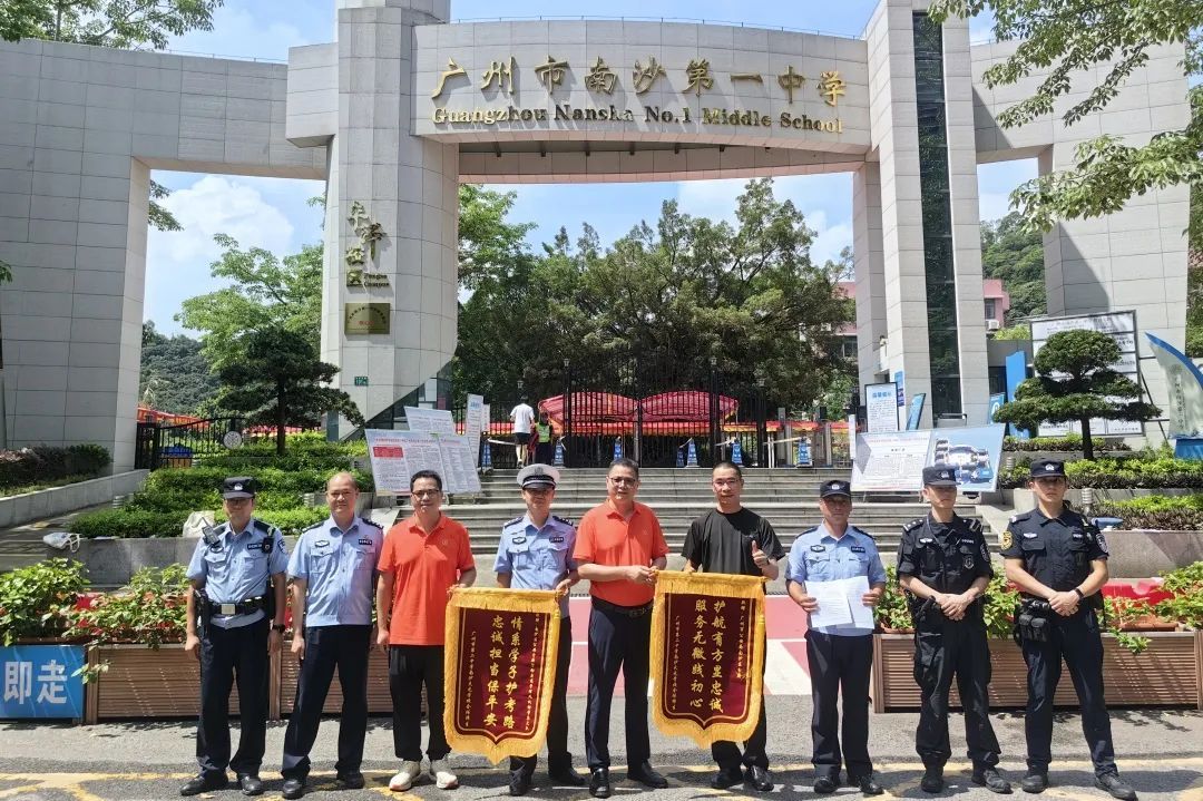 6月9日,高考落幕的暖阳中,南沙公安迎来特殊访客,天元中学等师生代表手持卷袖式锦旗郑重展开,鎏金大字“情系学子护考路 忠诚担当保平安”在红绸映衬下熠熠生辉。此外,广州市南沙第一中学、广州市外国语学校等也纷纷送来锦旗,这些承载着各个学校、各个家庭心意的旗帜,为南沙公安历时三个昼夜的高考护航行动写下炽热注脚。